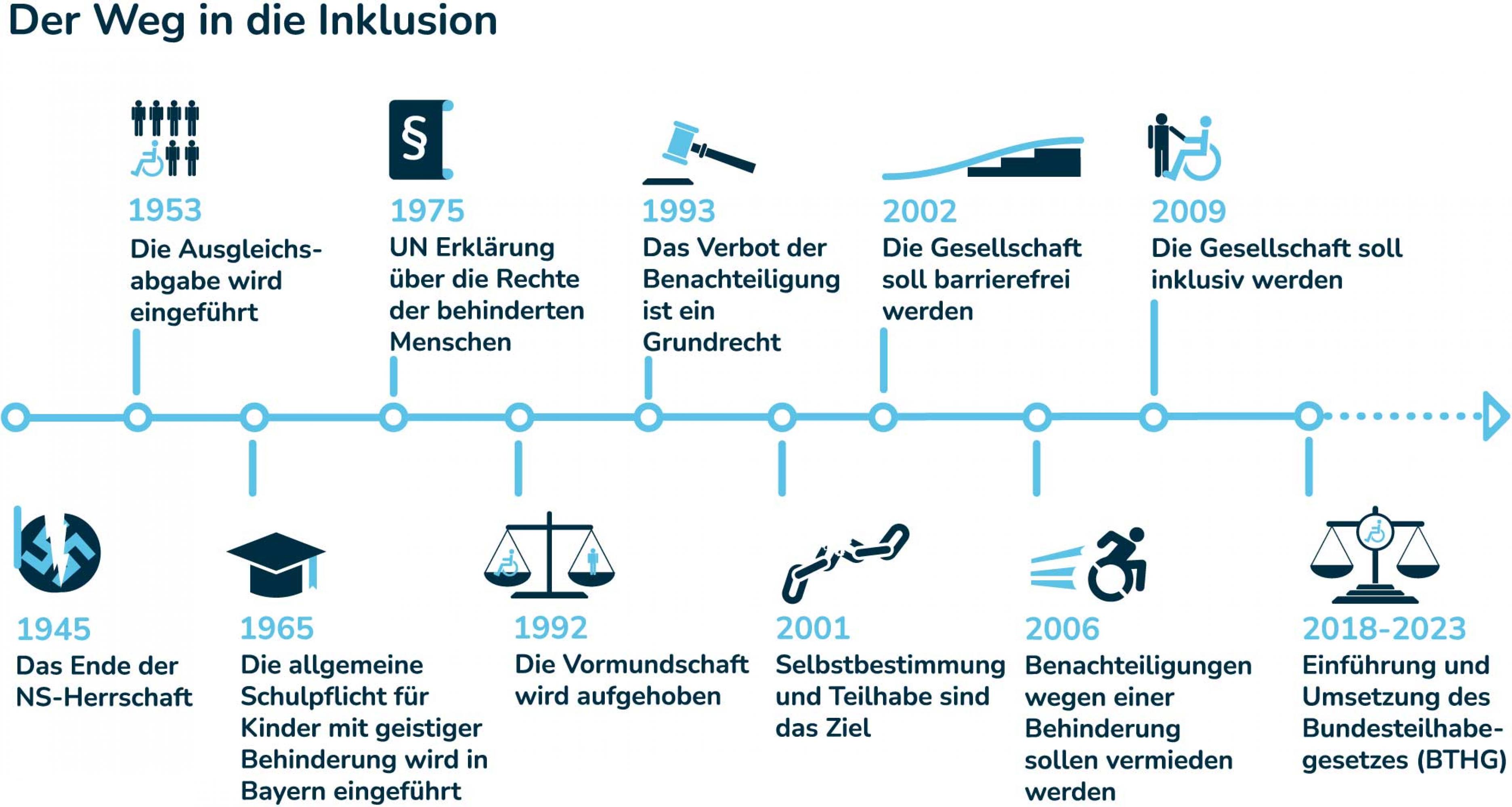 Der Umgang mit Menschen mit Behinderung erlebte in Deutschland seit den 1960er Jahren einen Paradigmenwechsel: Von der Verwaltung und Aufbewahrung von Menschen mit Behinderung hin zu einem menschenzentrierten Verständnis von Inklusion und Teilhabe. Dieser Prozess von der Defizit- zur Ressourcenorientierung, von der Bevormundung und Fürsorge hin zu Selbstbestimmung und selbstverständlicher Teilhabe ist bei Weitem nicht abgeschlossen – dennoch haben Menschen mit Behinderung in den vergangenen 60 Jahren mehr Rechte gewonnen.